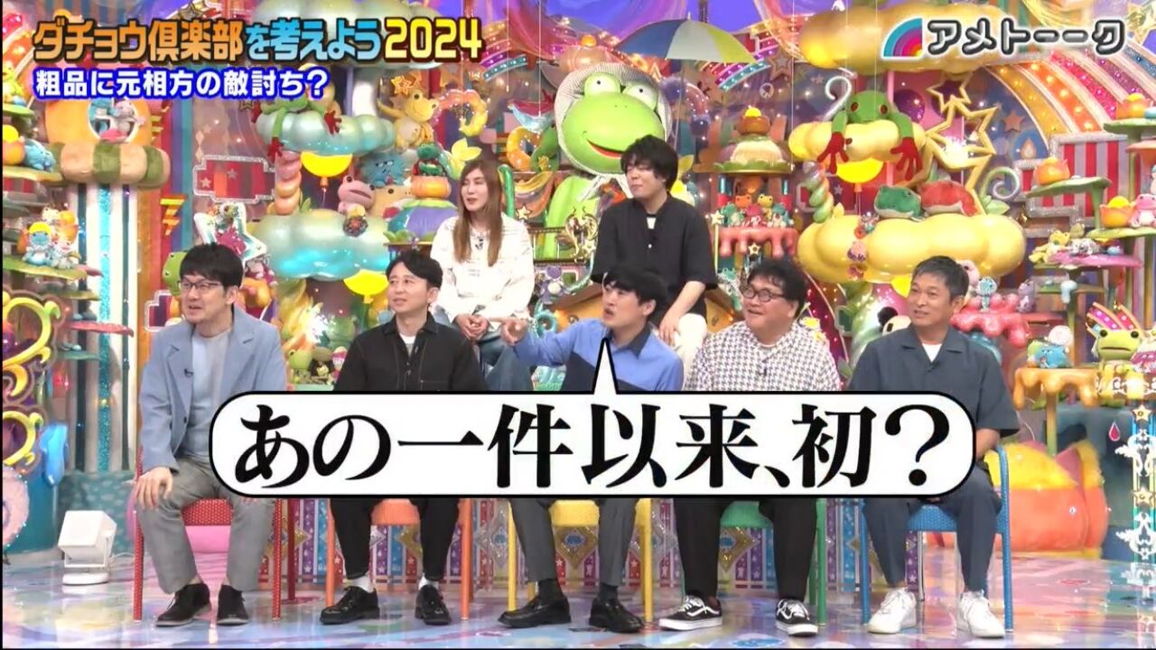 「ダチョウ倶楽部を考えよう2024」と題して、肥後克広と寺門ジモンのコンビとなったダチョウの近況を、有吉、劇団のほか、土田晃之、カンニング竹山らが語る年に一度の恒例企画。