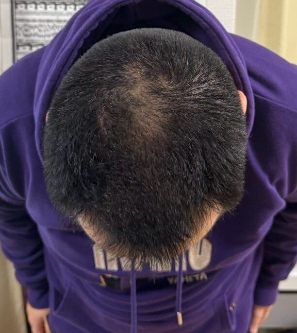 内海さんが「8000円の発毛剤のみで3ヶ月! 完全に発毛しとる!」と添えて投稿したのは、3カ月前と現在の自身の頭部が写った写真。3カ月前は髪の毛の面積が少なく、頭皮が目立っていましたが……。なんと現在は髪の毛が生えそろっており、ふさわふになっています。