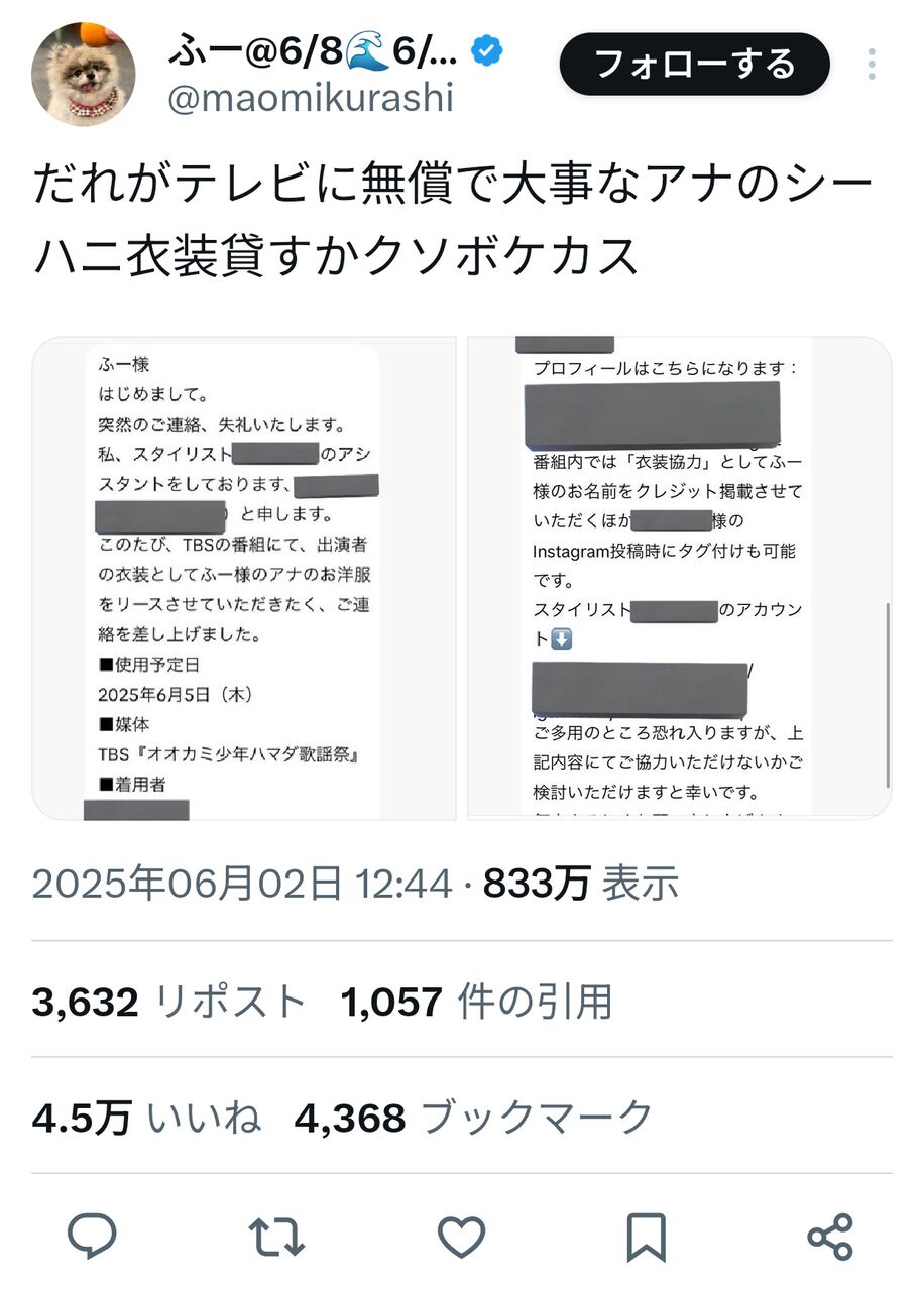 今のテレビ業界って衣装に金払うことすらできないのかよ