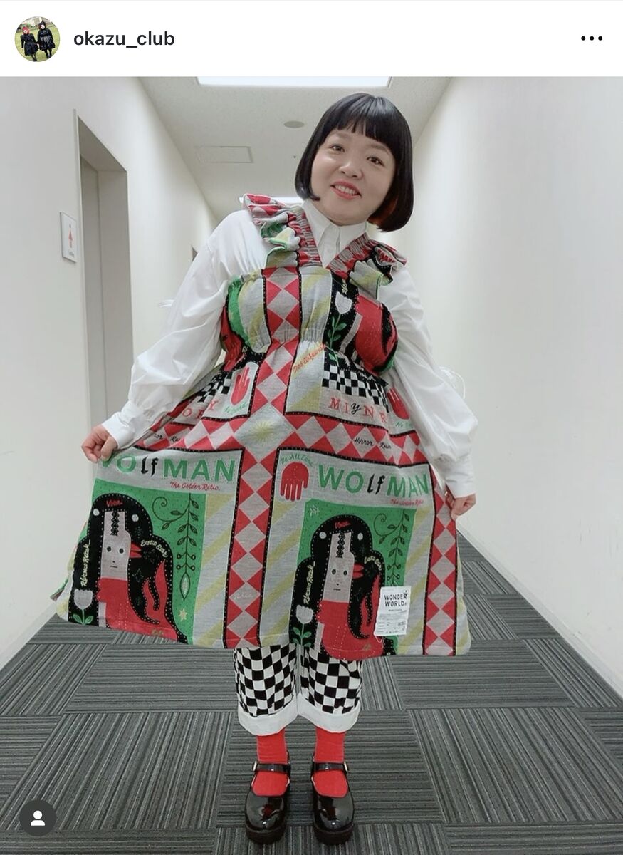 インスタグラムに「ちょっと前のですが…」とスタイリストがオカリナの衣装姿を投稿。カラフルなワンピースにギンガムチェックのパンツを合わせたスタイルで「オカリナさんらしく、ちょっとコケティッシュさもありつつ、安定のドール感でまとめました!ワンピースの柄も不思議な感じで可愛く、うるさいかな…と思いつつ、オカリナさんならイケるだろう!!と言う謎の自信でチェッカーのパンツを合わせました」とポイントを説明した。