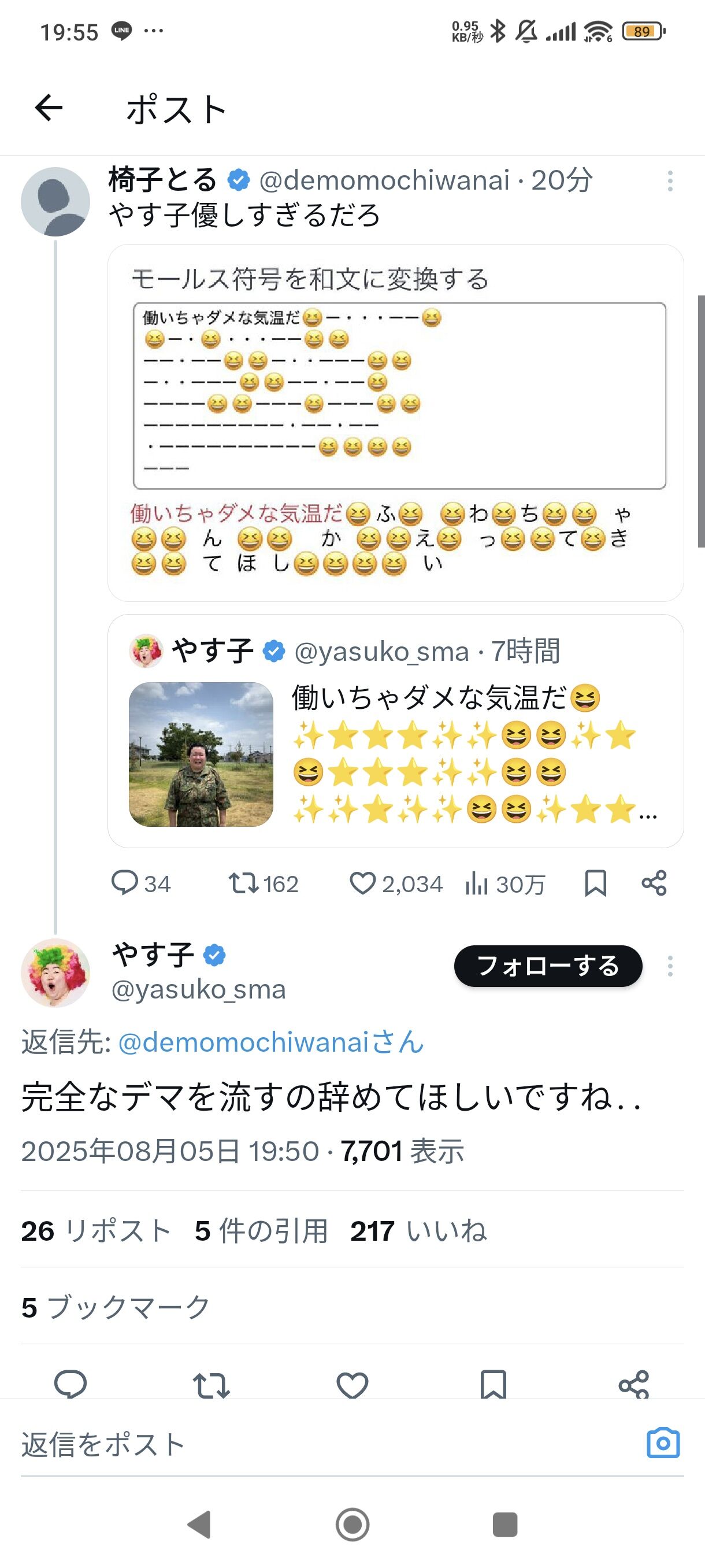 【悲報】やす子、また一般人とレスバ 「デマ流すな😡」 2025年08月07日 カテゴリ:女芸人まとめ 1: それでも動く名無し 2025/08/05(火) 21:18:38.21 ID:8BmkC0yn0 4: それでも動く名無し 2025/08/05(火) 21:20:18.21 ID:59LUAQsv0 草 6: それでも動く名無し 2025/08/05(火) 21:21:10.59 ID:NCR2JHl60 悪質なデマを許すな 【【悲報】やす子、また一般人とレスバ 「デマ流すな😡」】の続きを読む タグ :#やす子