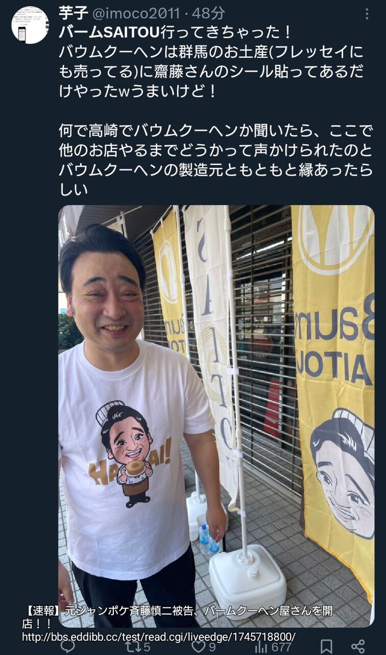 女性への性的暴行問題で、吉本興業との契約を解除されたお笑いトリオ「ジャングルポケット」の元メンバー・斉藤慎二氏。現在、在宅起訴中となっている同氏が販売を開始して話題を呼んだバームクーヘンを購入し、実食してみました。(略)